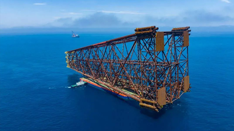 近日 由我国自主设计建造的 亚洲第一深水导管架“海基二号” 在珠江口盆地海域成功滑移下水 巨力索具保障该项目吊装顺利“扶正” 创造了固定式海洋平台 重量、高度、作业深度等多项亚洲纪录