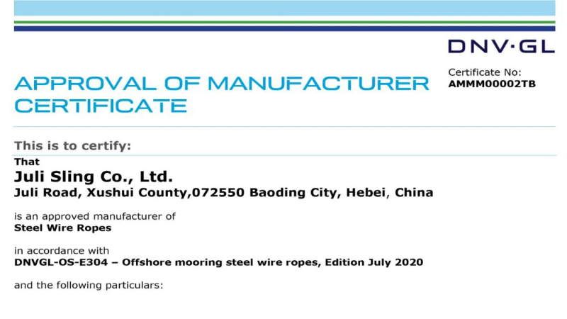 为助力我国蓝碳经济大力发展,从而促进海洋生态良性循环,助力“碳达峰、碳中和”目标的推进步伐,实现海洋经济可持续发展,巨力索具近年来开展了一系列产品研发工作。目前研发主要以钢丝绳系泊缆、纤维系泊缆、系泊锻造连接件产品为主,并取得了DNVGL 工厂认可证书、ABS 设计评估证书,同时取得了相关的产品认证。成功应用于海峡 1 号海洋牧场、三峡引领号漂浮式风机、中集来福士浮式光伏等项目。