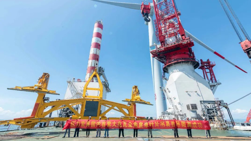 近日,汕头某海域,巨力索具研发的国内首台50吨大兆瓦全角度旋转式海上单叶片吊具,刚刚面世,便展开连续作业,顺利完成5台风机的叶片吊装,经受住了考验,完美的展示了巨力吊具的高可靠性、高安全性及高效率。