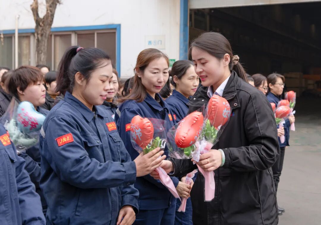 活动当天,各事业部负责人共同为女员工送上节日祝福。其中,以天然玉石、玛瑙串联而成的定制手串备受瞩目。手串设计融合传统文化与现代美学,缀以“平安”“吉祥”等祝福语挂饰,寓意守护女性员工健康幸福。礼物发放现场欢声笑语不断,女员工们纷纷佩戴手串合影留念,感叹“公司用心挑选的礼物既有颜值又有温度”。