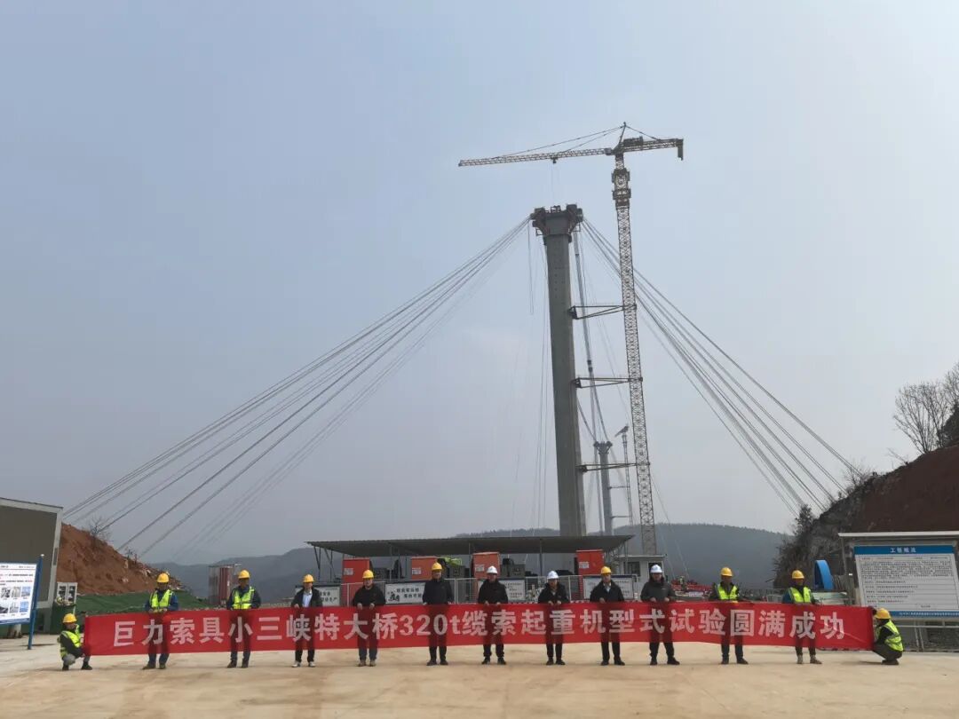 近日,由巨力索具研发的丹江小三峡特大桥缆索起重机系统顺利完成安装调试,成功完成首节钢箱梁吊装,标志着这一国家重点桥梁工程迈入主体施工的关键阶段。作为国内索具行业领军企业,巨力索具凭借自主研发的高性能缆索起重机技术,再次为大型桥梁工程建设提供了“安全、高效、智能化”的解决方案。