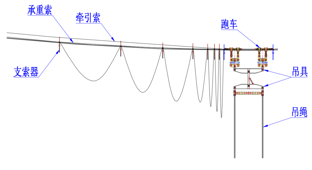 该缆索起重机系统采用高强度、耐腐蚀特种钢丝绳及轻量化承重结构设计,最大起重量达320吨,可覆盖全桥施工作业面,实现混凝土节段、钢构件等物资的高精度吊装。同时,系统搭载智能化远程监控平台,实时监测风速、载荷、设备运行状态,确保复杂环境下的施工安全与效率。