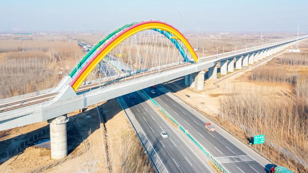 “花式跨越”彩虹桥——京雄城际铁路跨大广高速系杆拱桥,是京雄城际铁路的重要组成部分,对完善京津冀区域路网布局、构建快速立体式交通体系有重要意义。巨力索具承接该桥上部结构施工。