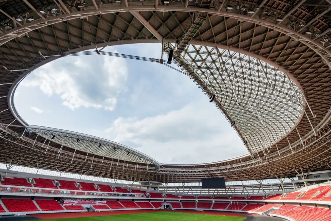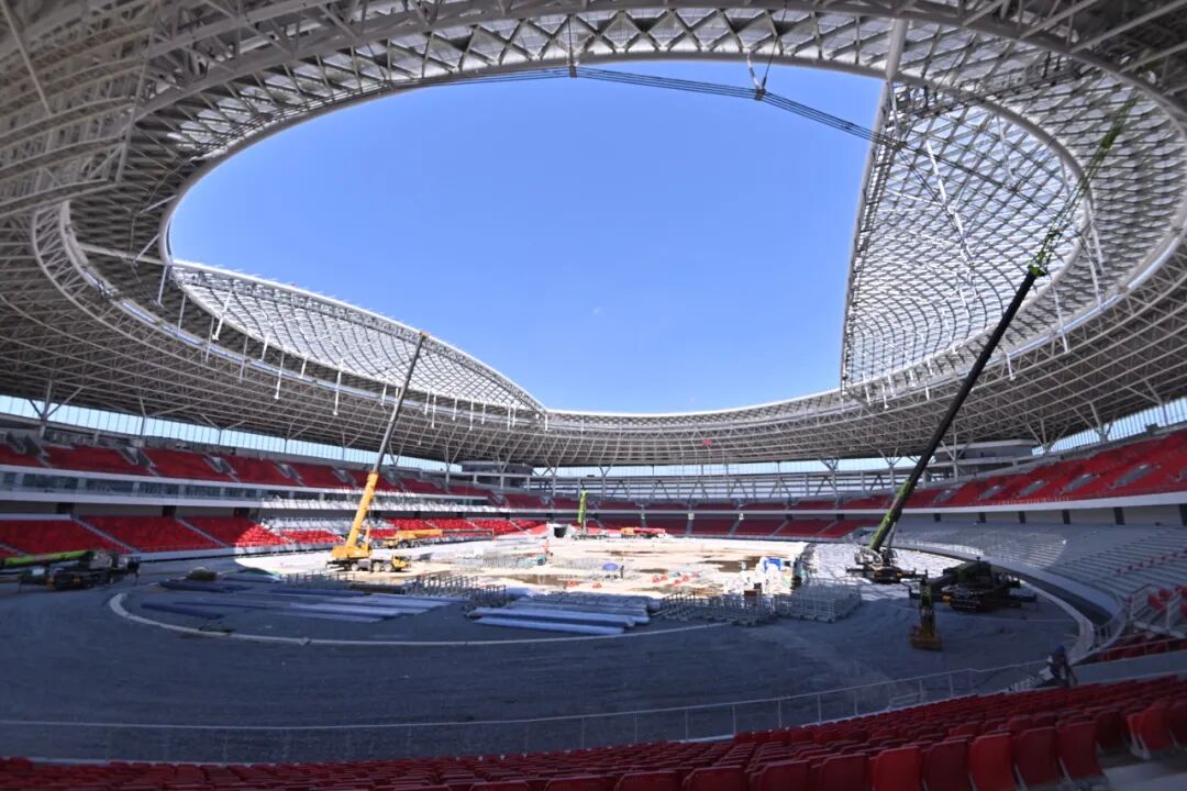 雄安体育中心的建设不仅注重美学设计,更融入了大量科技创新元素。国内首创的“轮辐式张弦铝合金网壳”屋顶体系,将单层网壳与索承张拉技术相融合,以轻盈之姿承载万钧之力。国内首创的“涟漪悬索网格结构”,结合悬索、网格与新型材料技术,不仅实现了大跨度空间覆盖,还以独特的形态呼应了雄安新区的生态理念。