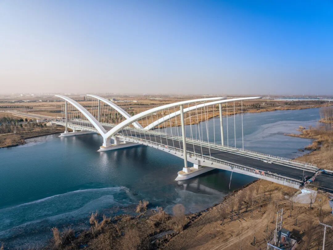 白沟引河留通桥是雄安新区地标性建筑,位于白沟引河入淀口,是入淀口上的重要节点,同时是白沟引河入烧车淀北部片区的门户。大桥上部结构钢构件用量1500多吨,均由巨力索具股份有限公司制造施工。