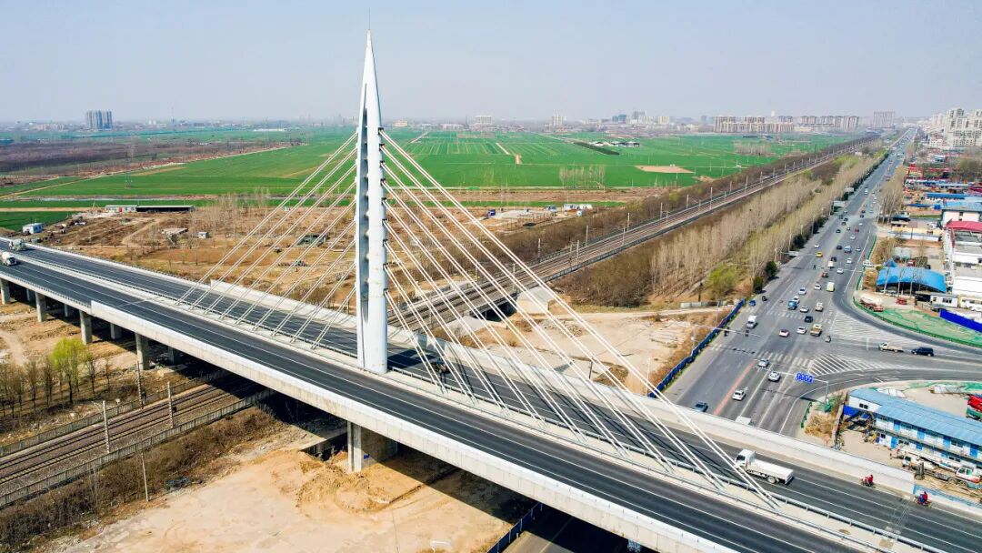 安大线建材通道徐水南外环与京广铁路斜拉转体立交桥是雄安新区标志性工程,能更好地保障雄安新区建材运输通行能力和服务功能的发挥,缓解通往雄安新区的交通压力,为过往车辆提供了快捷通畅的交通环境,从而实现路网连通、交汇、通达的集散功能。桥梁主体钢结构部分和斜拉索全部由巨力索具承接施工。