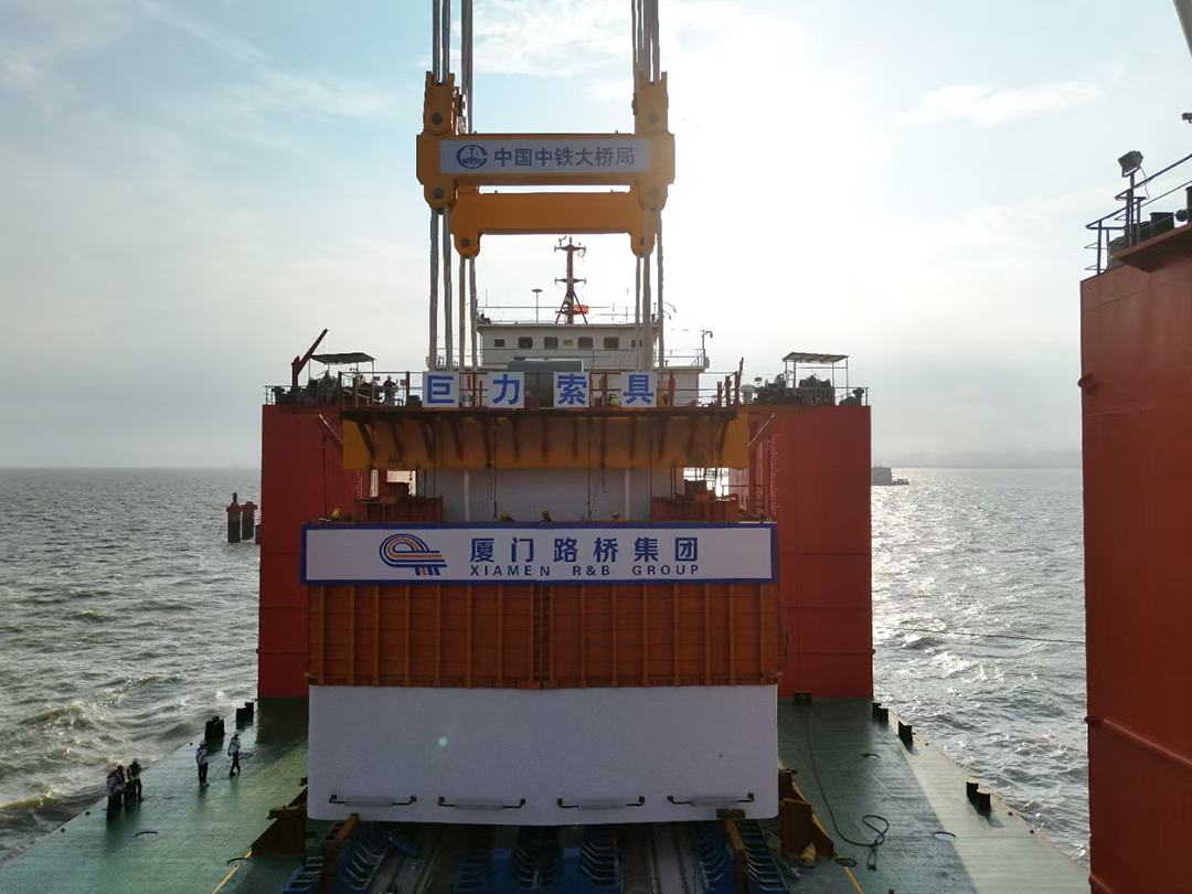 同时,巨力索具工程项目团队积极配合客户创新发展的理念,通过“工厂化预制+模块化设计”“模拟吊装+精准化控制”的四位一体先进吊装方案,全力开展智造技术攻关,集成高精度GPS与液压调位系统,实现了墩台与桩基的毫米级精确对接。