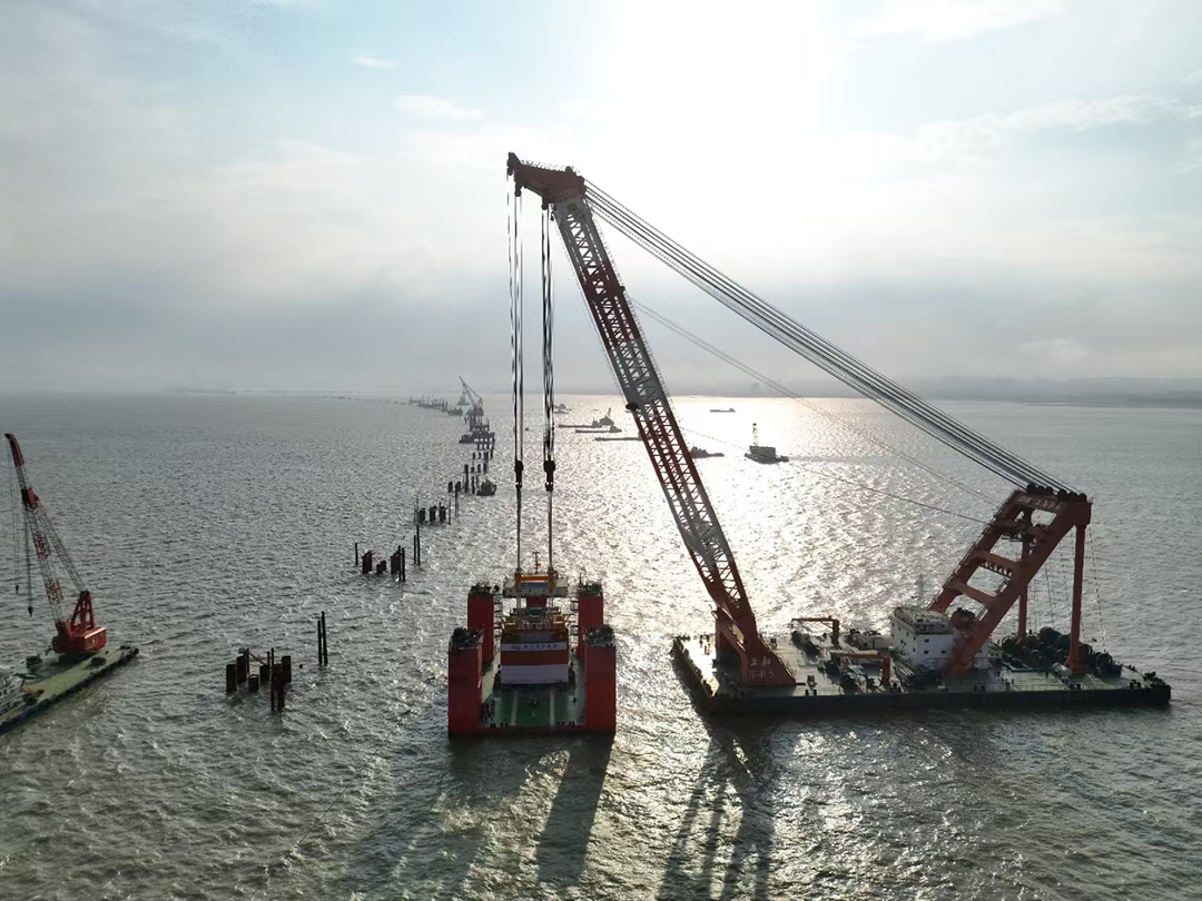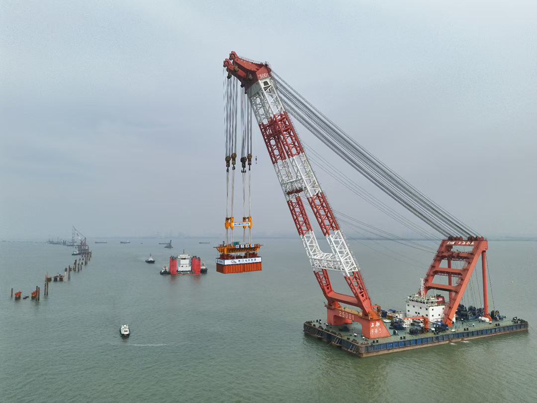 在项目建设及吊装过程中,巨力索具工程项目团队与总包单位齐心协力,共同打造生态施工标杆,采用“搭积木”式预制工艺,大幅减少海上作业时间达80%,在施工期间实现了对中华白海豚栖息地的零干扰。同时,项目部联合海事部门构建起“海陆空”立体防护网,严格落实环保要求,实现废水处理“零排放”,为海洋生态环境保护贡献力量。