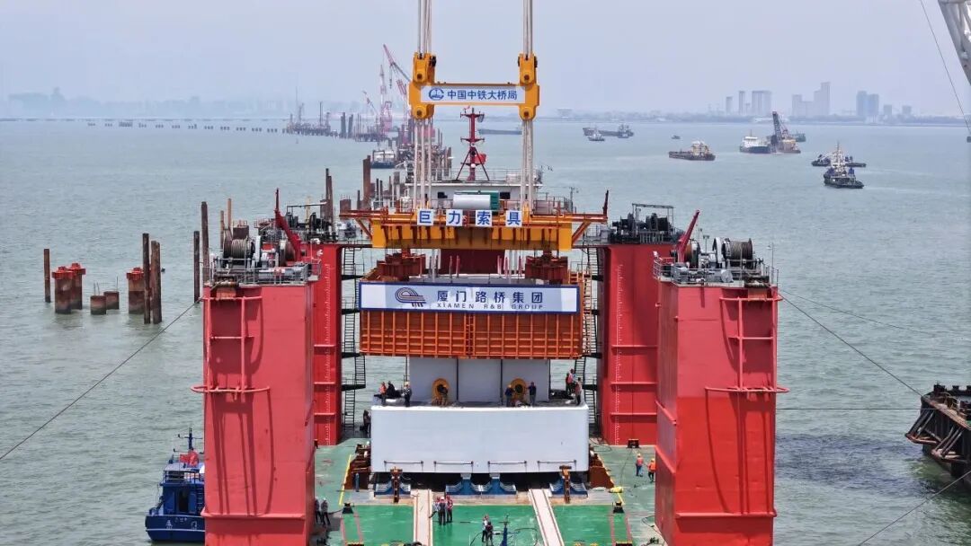 此次完成吊装的预制墩台体型巨大,长15.3米、宽11.6米、高4.5米,总重量相当于460辆标准货车的载重总量。