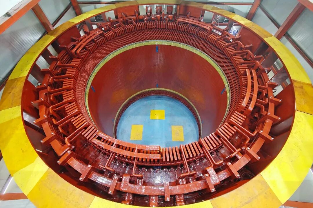 浙江天台抽蓄电站是国内在建单机容量最大、全球水头最高的抽蓄电站,其2号机定子堪称电站核心设备中的“巨无霸”。定子外径约8.1米,由15万余张硅钢片精密叠装而成,整体起吊重量约482.7吨,是该电站开工以来吊装的第三台具有毫米级定位精度的超大单体设备。