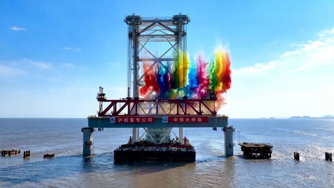 杭州湾跨海铁路大桥全长约29.2公里,设计时速350公里,是新建南通至宁波高速铁路的控制性工程。其中,海中引桥采用230孔80米/60米预制箱梁,最长联达3080米,其“超长联、大跨度”创下了高速铁路混凝土连续梁的世界纪录。