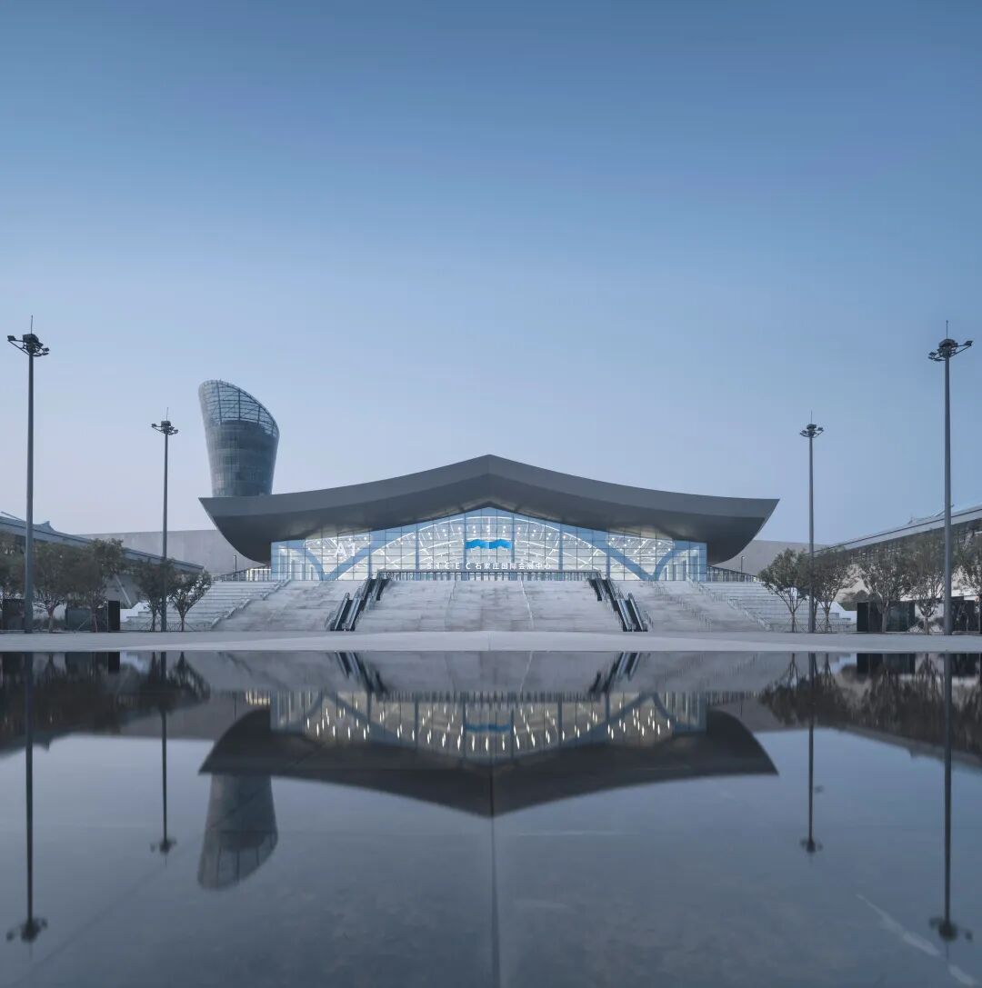 该项目采用国内首创的“轮辐式张弦铝合金网壳”屋顶结构体系,融合单层网壳与索承张拉技术,实现轻盈造型与高承载力的完美统一。同时,创新采用“涟漪悬索网格结构”,呼应雄安新区生态城市理念,展现独特建筑美学。