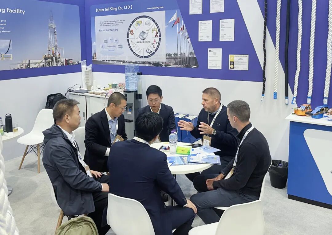 展会现场,巨力索具团队与来自世界各地的石油天然气行业的专业人士共同分享行业的尖端技术及产品,进行深度交流。许多国际客户对巨力索具产品已达到甚至超越国际API、DNV-GL、ABS等严苛标准表示高度认可,并对其解决复杂项目难题的能力表现出浓厚兴趣。