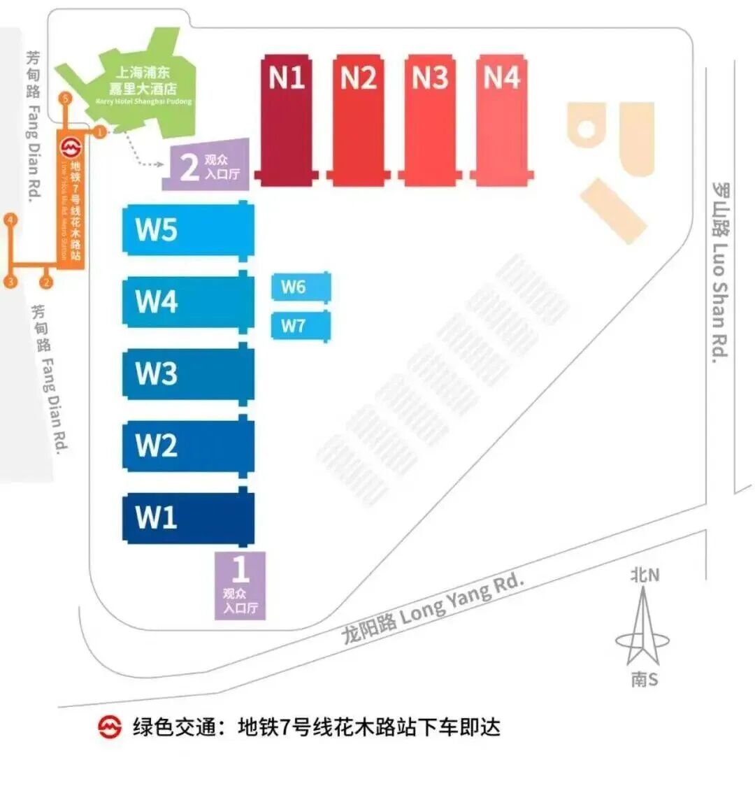 地铁7号线:乘坐7号线至花木路站,从1号、2号或5号出口出站,步行约2-3分钟可直达展馆2号入口厅。