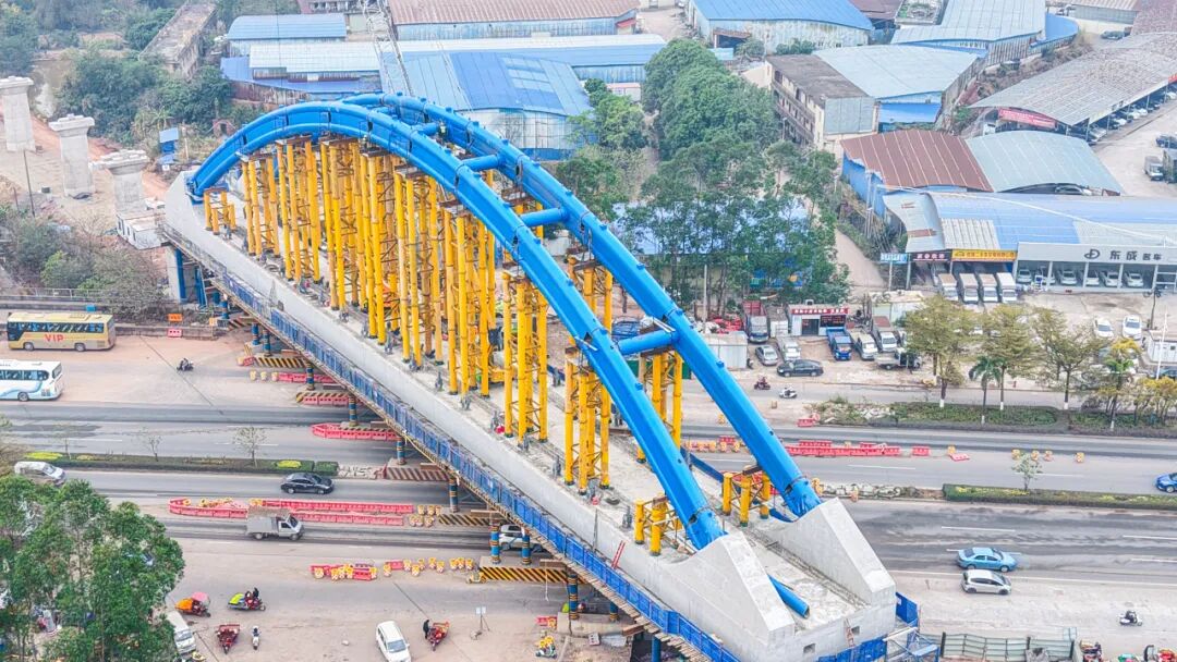 该项目位于广西钦州市钦北区,线路全长4.138公里,其中长达3.293公里的特大桥——跨钦州湾大道钢管拱桥,是全线的控制性工程。