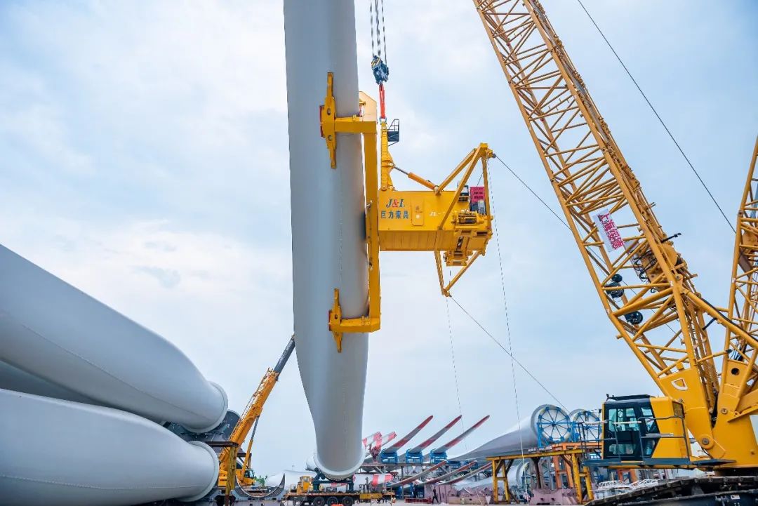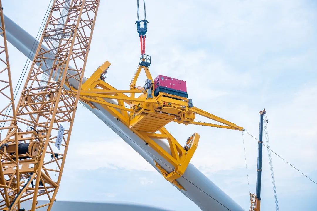 大兆瓦全角度海上单叶片吊具可满足单只叶片最大承重50吨。同时,将原有的吊装窗口平均风速提升至15m/s,最大阵风风速可达18m/s,极大拓宽了风机吊装窗口期,突破了海上吊装作业风速边界限制,是又一款海上风电单叶片吊装“利器”。