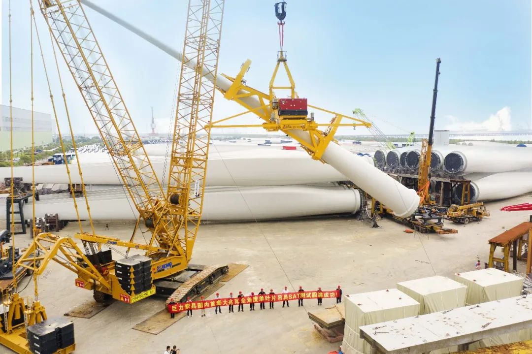 近日,巨力索具为国内某知名风电整机制造商提供的国内首套大兆瓦全角度海上单叶片吊具,顺利通过SAT现场测试,即将发往海上,进行目前国内最大海上风机叶片安装作业。当前正值中国海上风电“抢装”关键节点,大兆瓦全角度海上单叶片吊具的问世,将助推海上风电项目建设和发展。