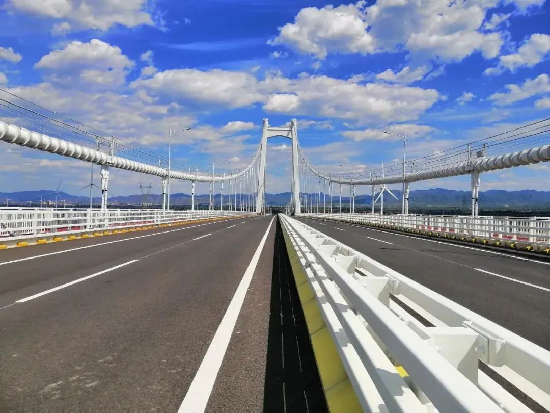 大桥采用巨力索具桥梁锚固系统、5*139平行钢丝吊索192根,钢梁采用技术领先的免涂装环保耐候钢,在国内大跨度桥梁上尚属首次采用。通车后,毗邻首都北京的张家口市怀来县又增加一条进京通道。也是京津冀协同发展、北京2022年冬奥会奥运廊道的重要部分。同时,对连通官厅水库国家湿地公园道路、发展旅旅游经济起到积极作用,两岸居民和农产品运输先前1个多小时缩短到现在的15分钟。