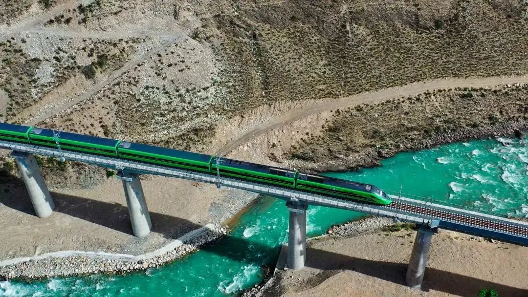 拉林铁路正线全长435.48公里,设计时速160公里,是西藏首条电气化铁路。藏木雅鲁藏布江双线特大桥全长525.1米,主拱跨径430米,桥址处海拔3350米,是目前世界上海拔最高、跨度最大的铁路钢管混凝土拱桥,也是雅鲁藏布江上首座“一跨过江”的铁路桥梁。