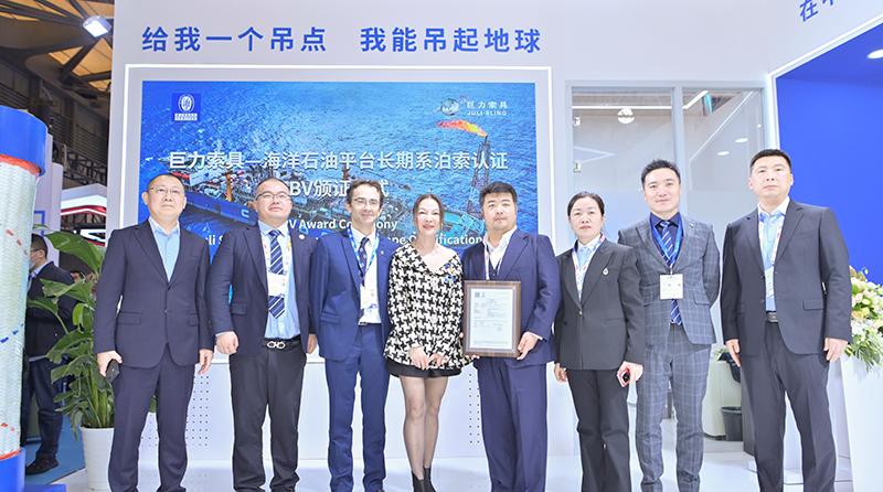 12月2日,2025中国国际海事会展(MARINTEC CHINA 2025)盛大开幕。开展首日,全球领先的检验认证机构法国船级社为巨力索具举行“海洋石油平台长期系泊索”专项认证证书颁证仪式。